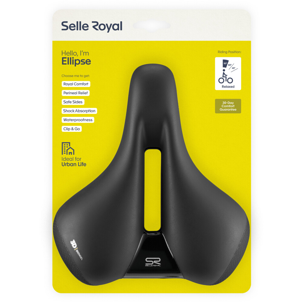 Komfortabel durch die Stadt. Dank der patentierten Royalgel™-Polsterung, die in Kombination mit der anatomischen Aussparung in der Mitte für eine Druckentlastung im empfindlichen Dammbereich sorgt, ist der Ellipse der ideale Fahrradsattel für Fahrten in der Stadt, ungeachtet der Länge. Der Ellipse ist mit einem doppelten Seitenschutz für zusätzlichen Schutz vor Blessuren ausgestattet und deshalb ein idealer Partner für alle City-Abenteuer.
